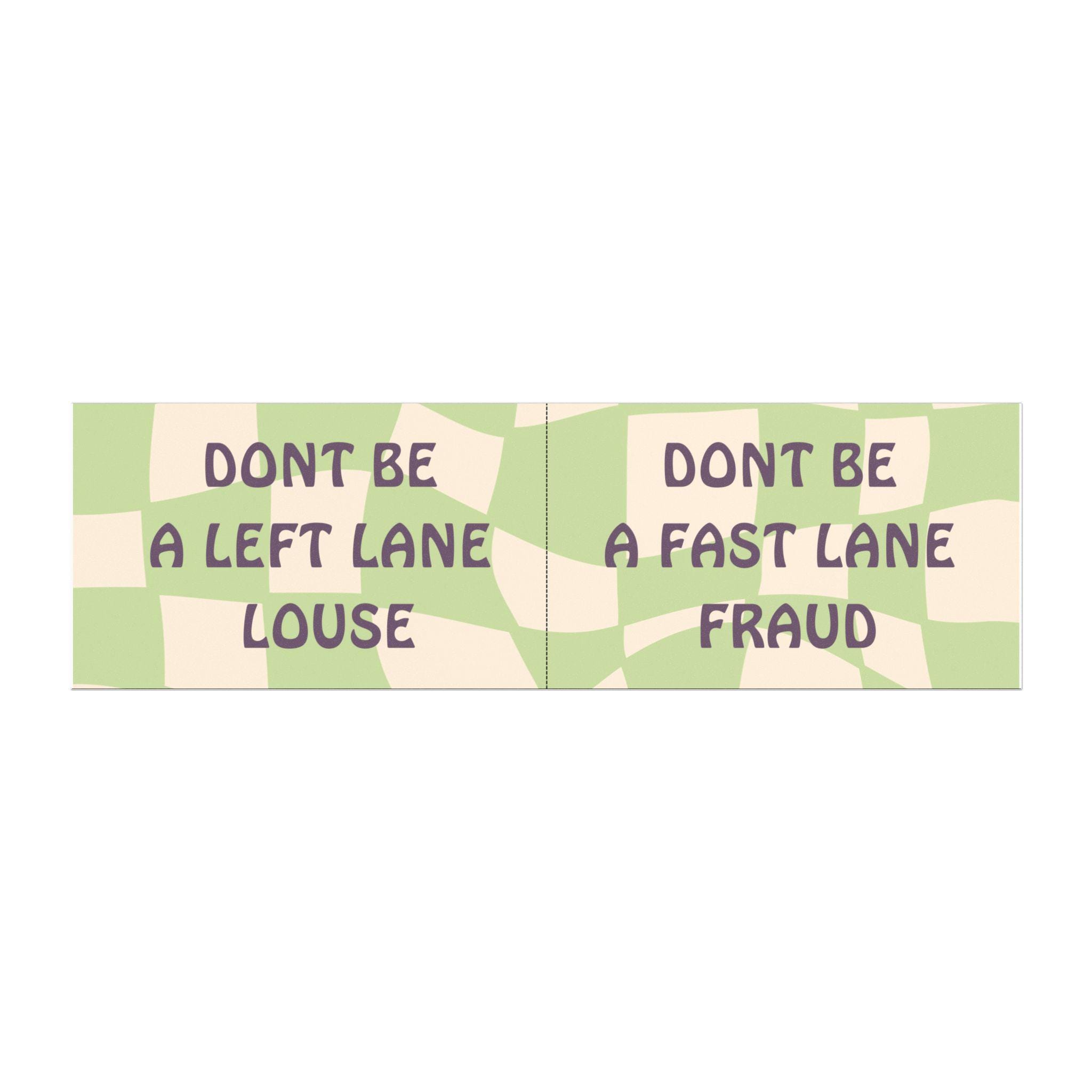 Tired of people parking themselves in the fast lane? This “Don’t Be a Left Lane Louse, Don’t Be a Fast Lane Fraud” magnet gets your point across — loud, clear, and with a touch of wit. Great for drivers who respect the road and know how to throw shade without yelling.