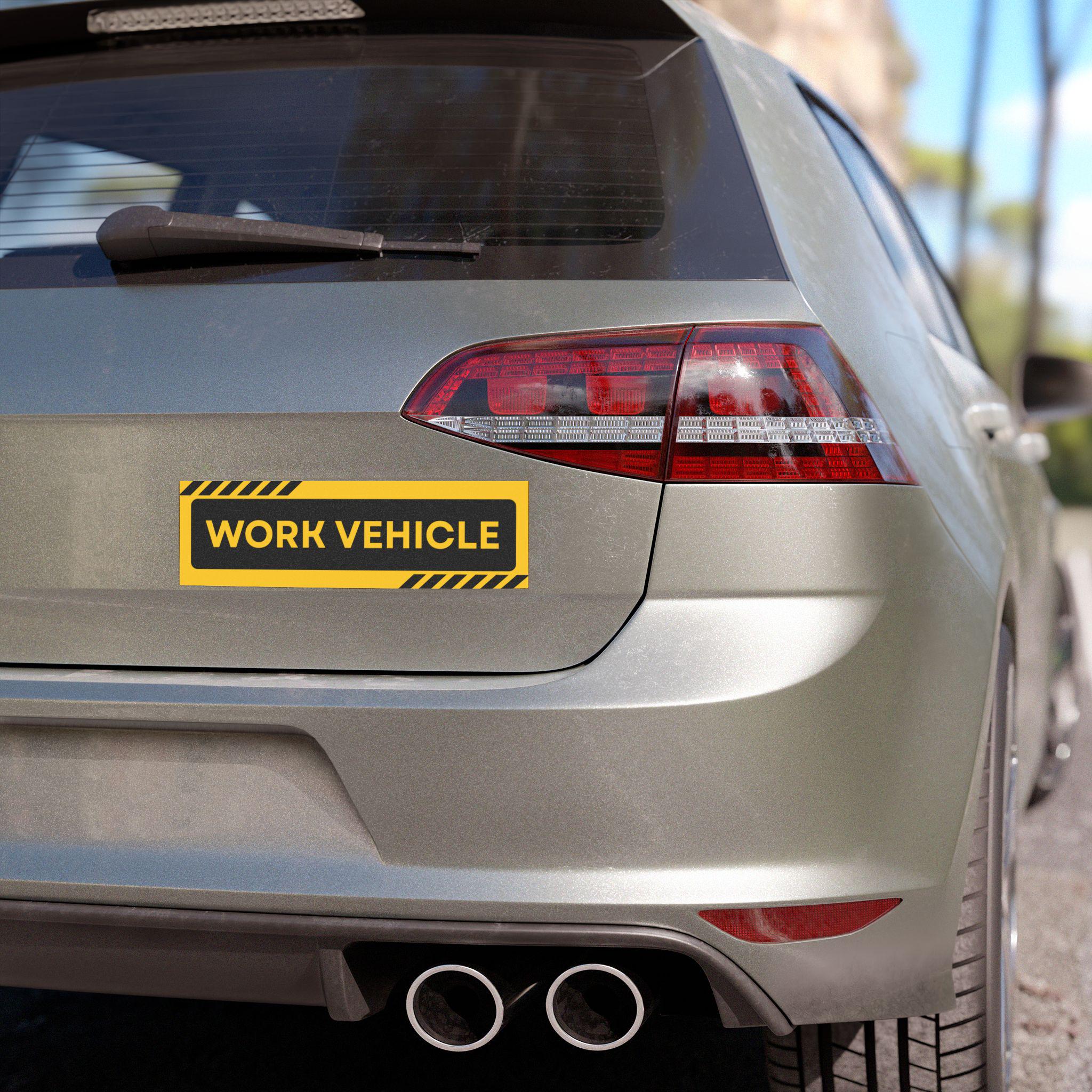 This “Work Vehicle” car magnet is perfect for the business fleet. Clearly identify your work truck or service van to potential customers while out on the road. Let others know to give extra space.